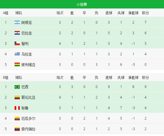 美洲杯最新排名!巴西绝杀锁定第一,智利遇冷,首支出局球队诞生