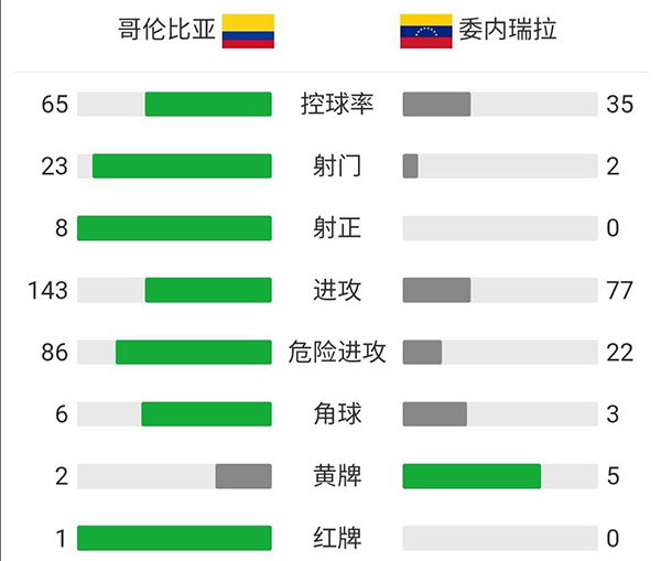 哥伦比亚0-0委内瑞拉 迪亚斯踩踏染红 乌里韦精彩倒钩被扑