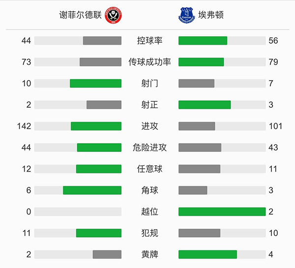 英超简报:谢菲尔德0-1埃弗顿 西于尔兹松低射建功