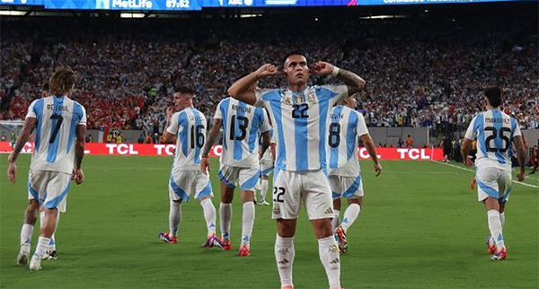 来源:24直播网06-26 13:0524直播网讯 美洲杯小组赛A组第2轮继续进行,首支晋级球队诞生,卫冕冠军阿根廷队1-0击败智利,小组赛两连胜,成为首支出线的球队。这场比赛的过程一波三折,前87分钟,双方都是0-0的状态,劳塔罗实现绝杀,率队提前晋级。
