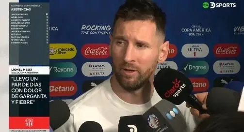 24直播网讯 美洲杯第二轮,阿根廷1-0智利提前出线。赛后梅西接受采访表示自己近日生病了。