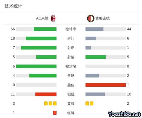 十人AC米兰总比分1-2费耶诺德遭淘汰 特奥假摔染红