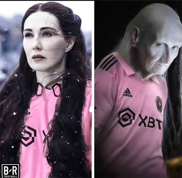 这里是将梅西比喻成拥有魔法的项链,权力的游戏中女巫梅丽珊卓戴着项链,颜值高,关键时刻能够拯救主角团。而一旦卸下项链,比喻迈阿密国际没有梅西,会瞬间从漂亮的女巫变成没有任何能力的老太太,差距巨大。