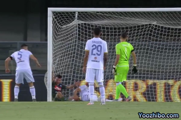 第38分钟,那不勒斯获得左侧角球,波利塔诺主罚将球吊入禁区,米利克高高跃起头球攻门,皮球弹地后飞入球门,那不勒斯领先,1-0!