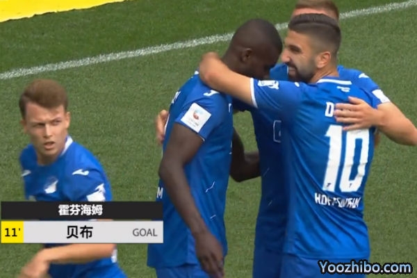 第11分钟,斯托夫左路传中,贝布拿球晃过对方门将后轻松推射空门得手,霍芬海姆领先,1-0
